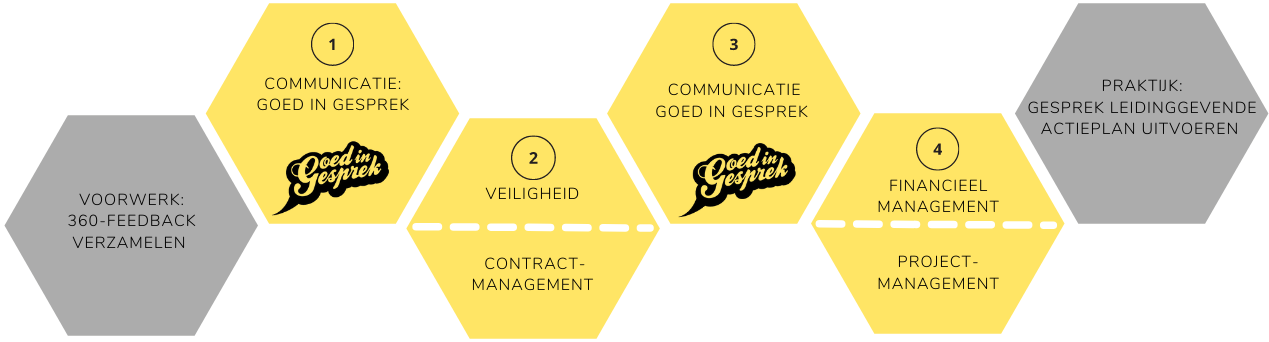 Aan het einde van dag 4 heb je een concreet en op jou toegespitst actieplan. Dit bespreek je met jouw leidinggevende, zodat hij/zij ook weet wat je hebt geleerd en hoe je ermee verder wil. Het echte slot van dit traject is de uitreiking van het bewijs van deelname met een hapje en een drankje.